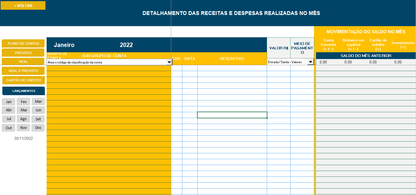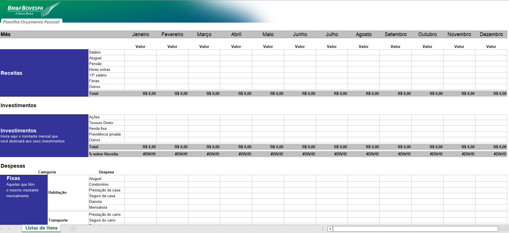 Por que usar: Divide despesas fixas, variáveis e investimentos, com uma visão mais estratégica.