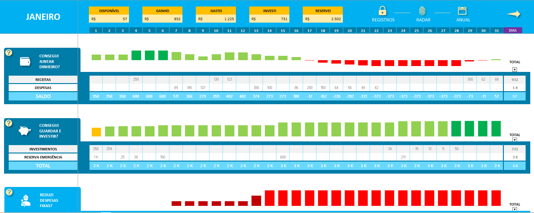 Por que usar: Te dá uma visão mensal e anual dos seus gastos. Mostra onde o dinheiro evapora com gráficos que julgam em silêncio.